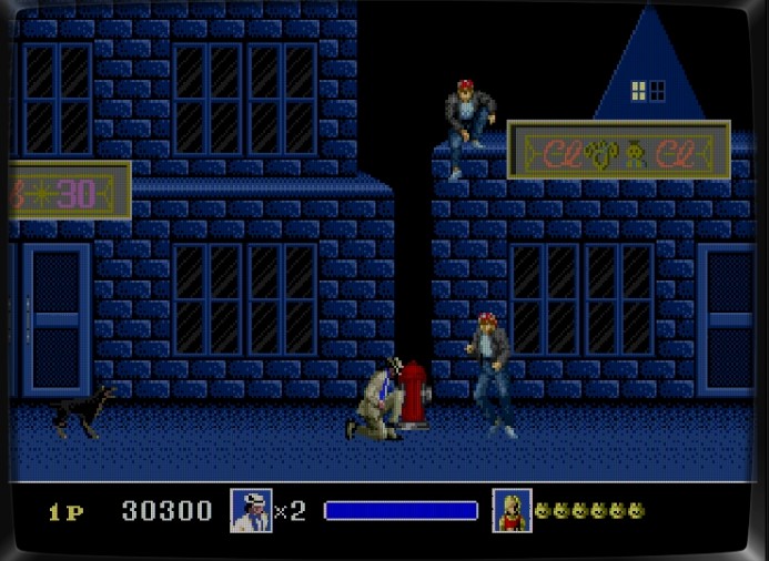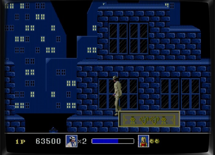 The opening level captures Gotham perfectly in glorious 16-bit style. If you hold the Select button, Batman takes a defensive stance that can block bullets and even bazookas — though knives still cut right through.