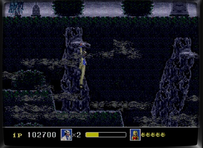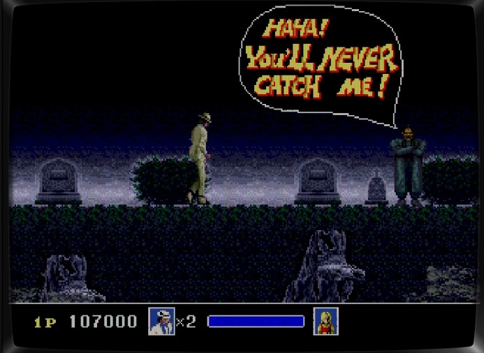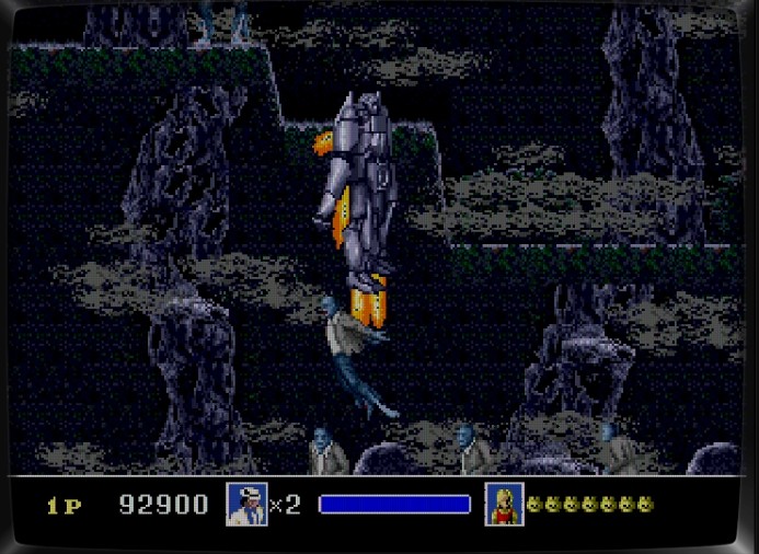 The boss of Stage 1 is the Bad Brothers duo. Seeing such a massive boss character moving around was truly mind-blowing at the time.