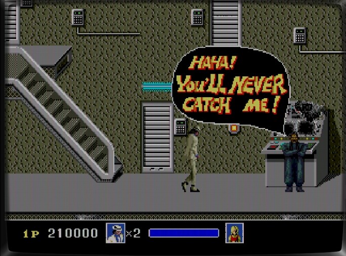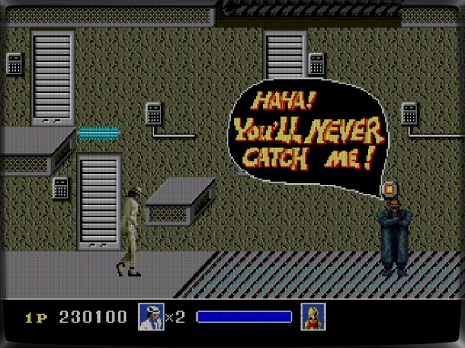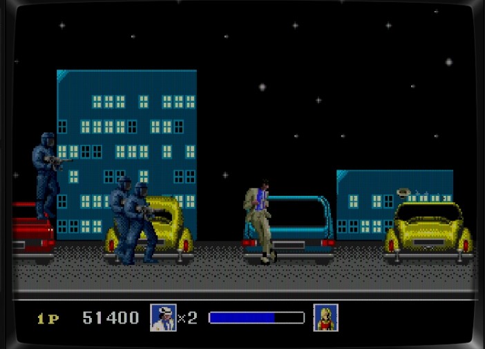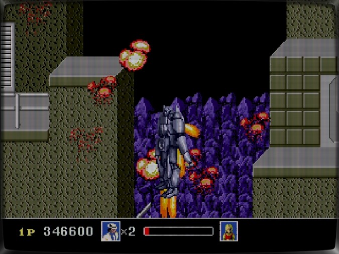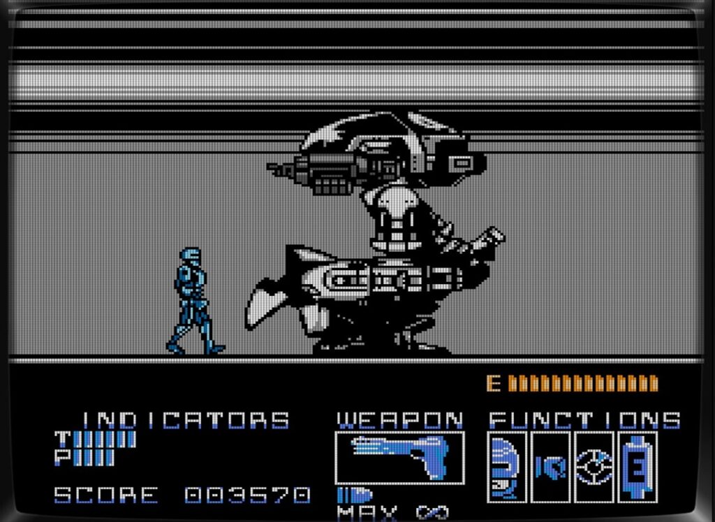 The final boss is, of course, ED-209 again. While RoboCop blasts him apart with a single rifle shot in the film, here the fight is tougher — if you’re not careful, you might even lose due to the time limit.