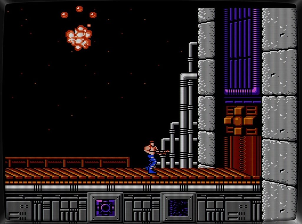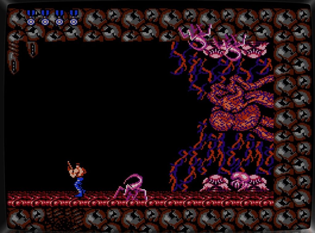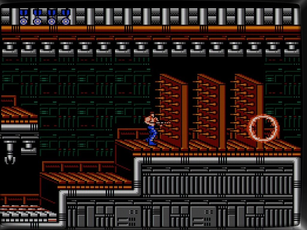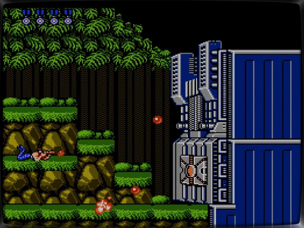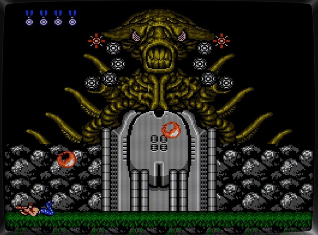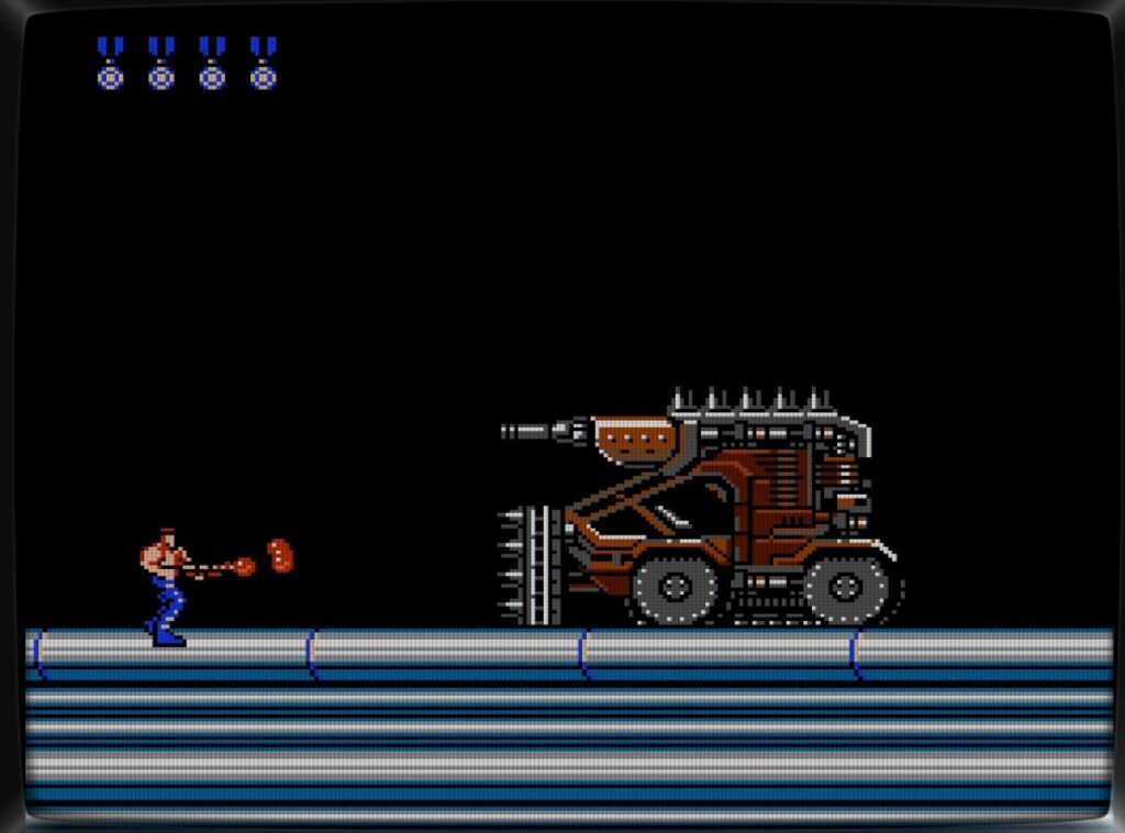 Boss: Jump over its attacks, shoot the weak points, and don’t stop firing — even if it throws weird weapons at you. You’ll probably beat it after losing a couple of lives.