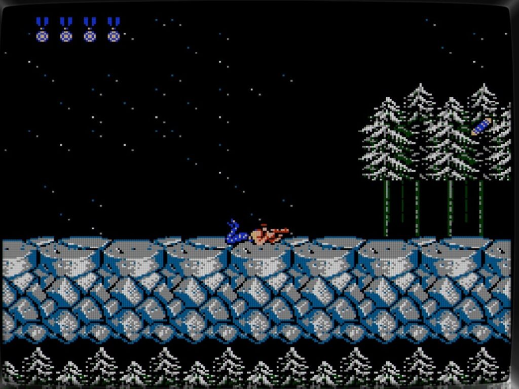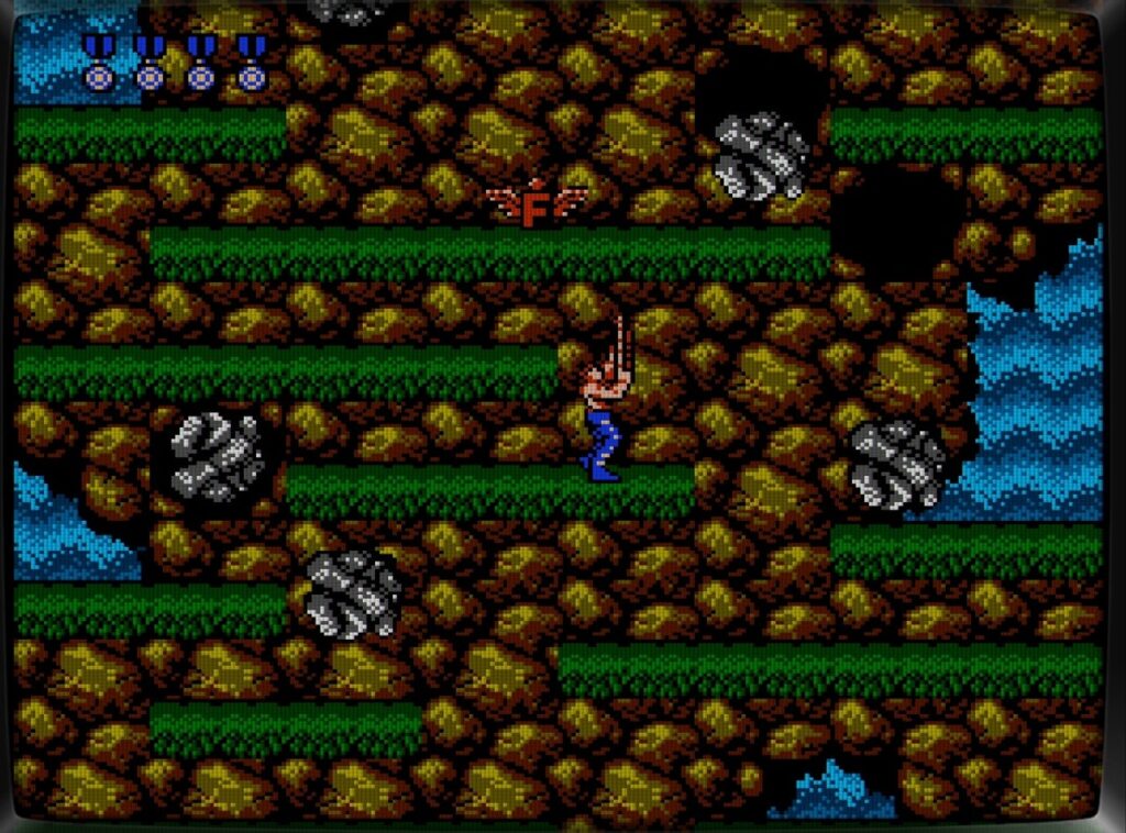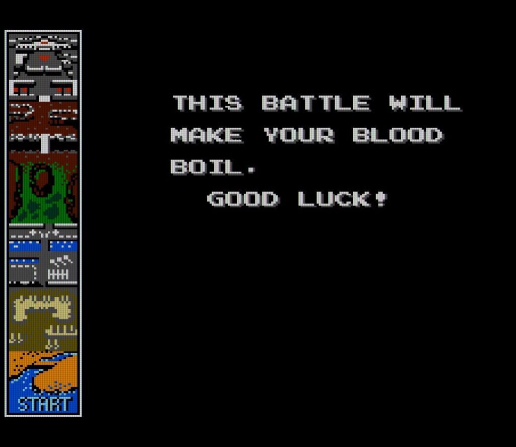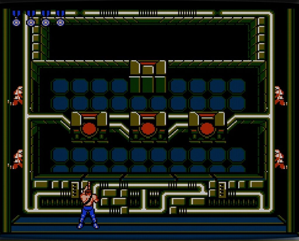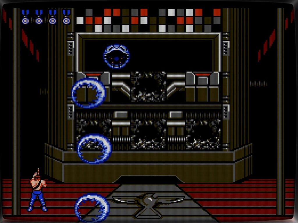 Boss: Jump over its attacks, shoot the weak points, and don’t stop firing — even if it throws weird weapons at you. You’ll probably beat it after losing a couple of lives.