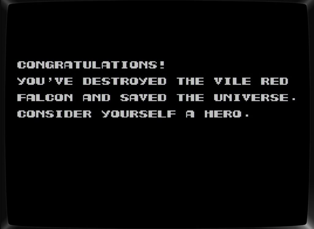 Congratulations! You’ve defeated the evil Red Falcon and saved the universe. Think of yourself as a hero… though, like any hero, you’re rewarded with nothing but “passion pay.” 😅